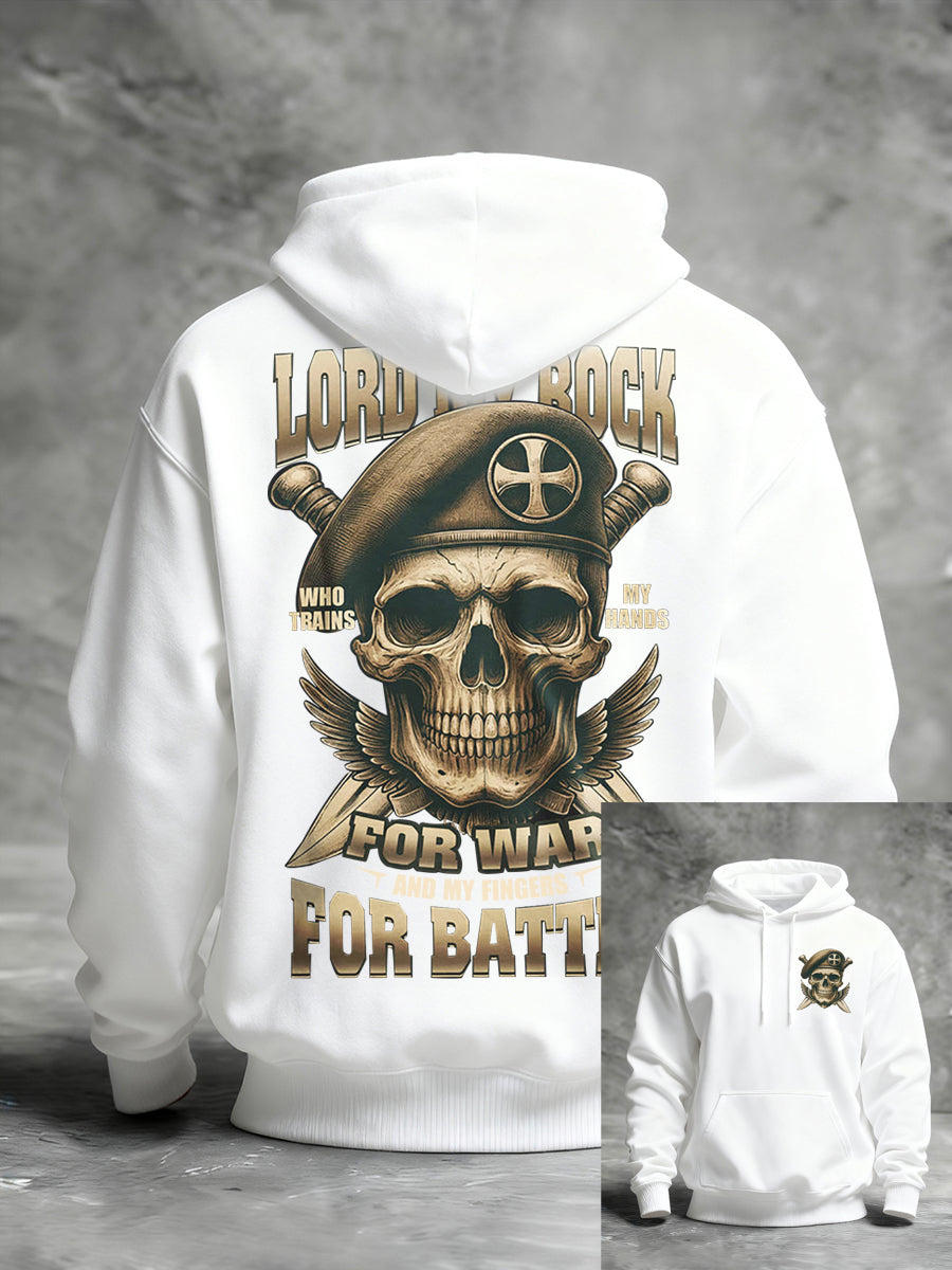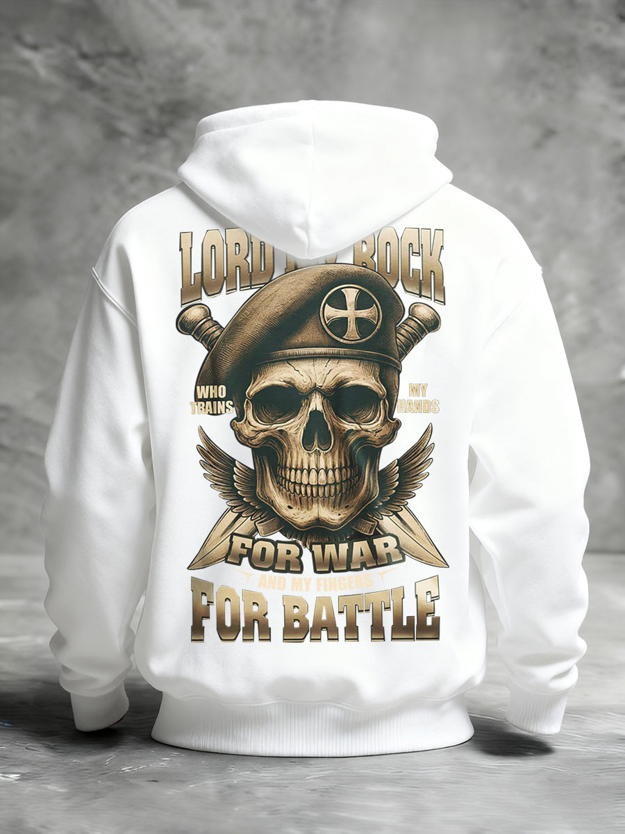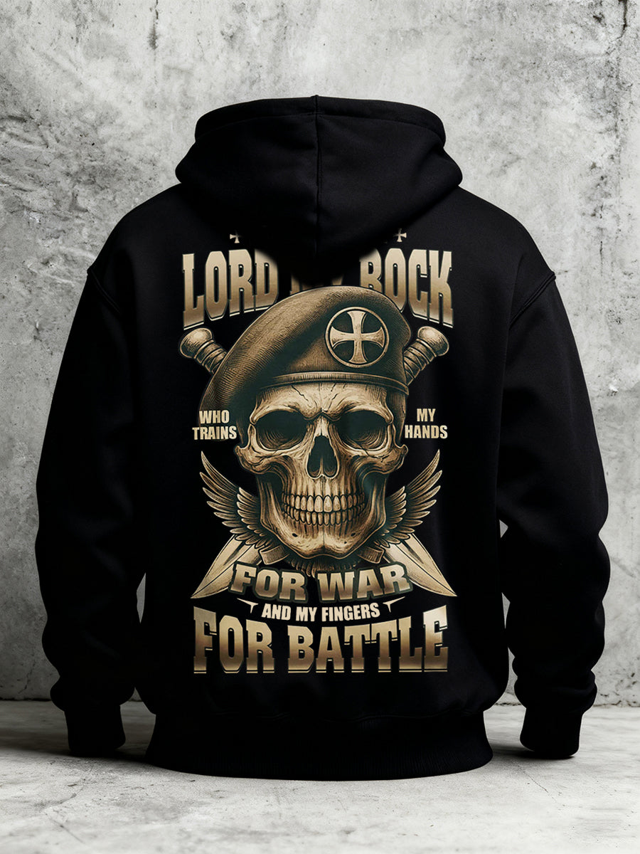 Men's Blessed Be The Lord My Rock Who Trains My Hands For War Printed Casual Hoodie