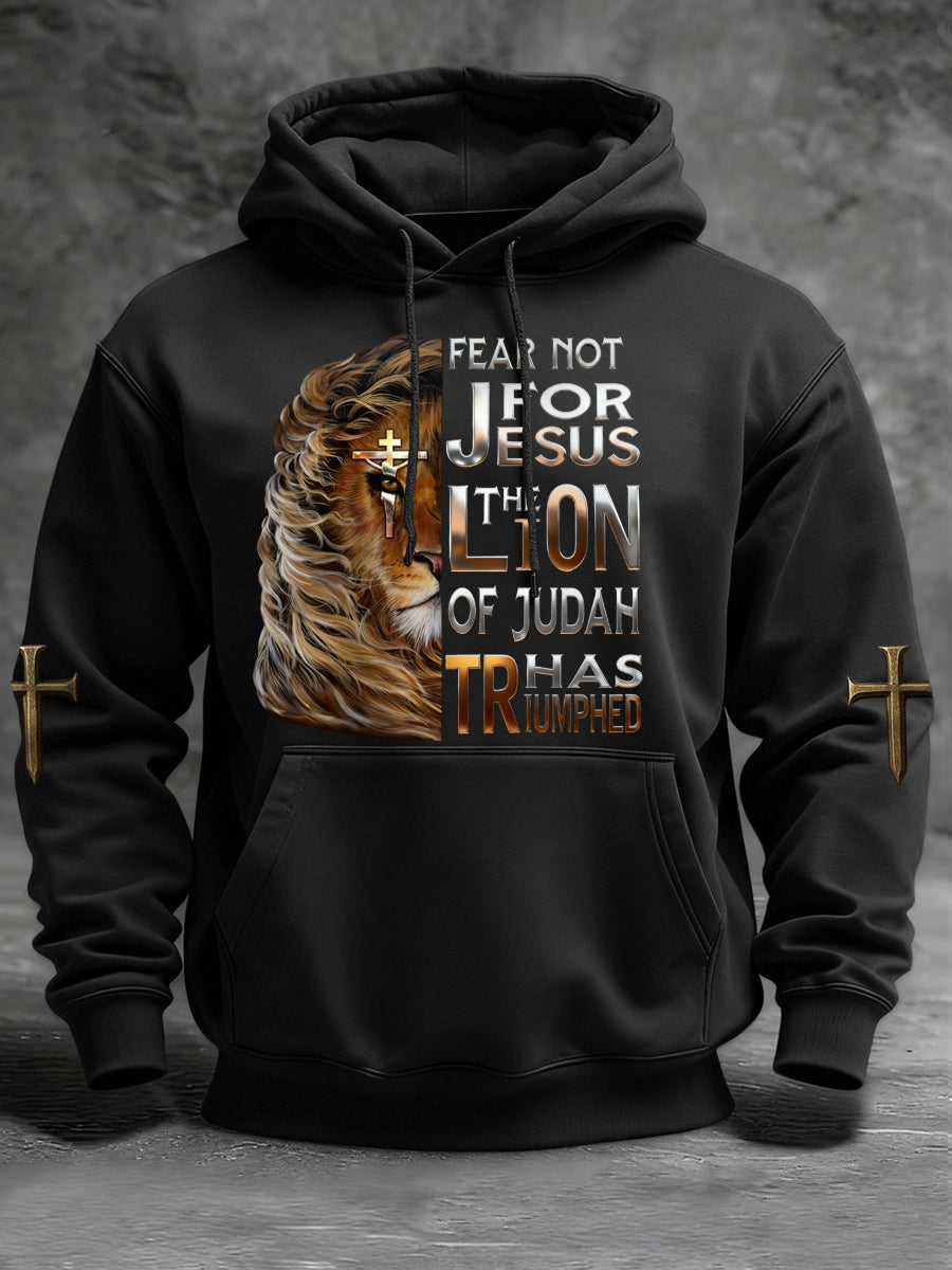 Men's Lion Of Judah Jesus Cross Faith Print Casual Hoodie
