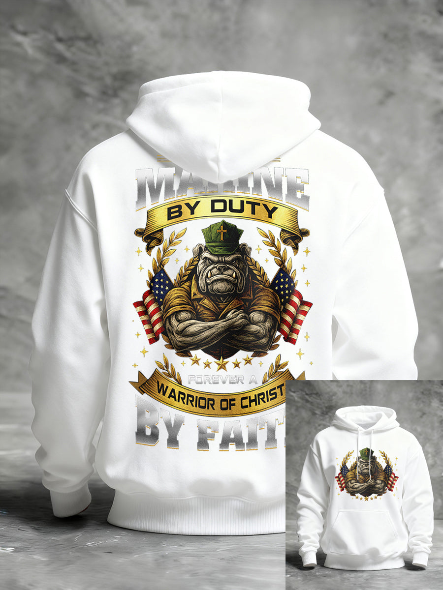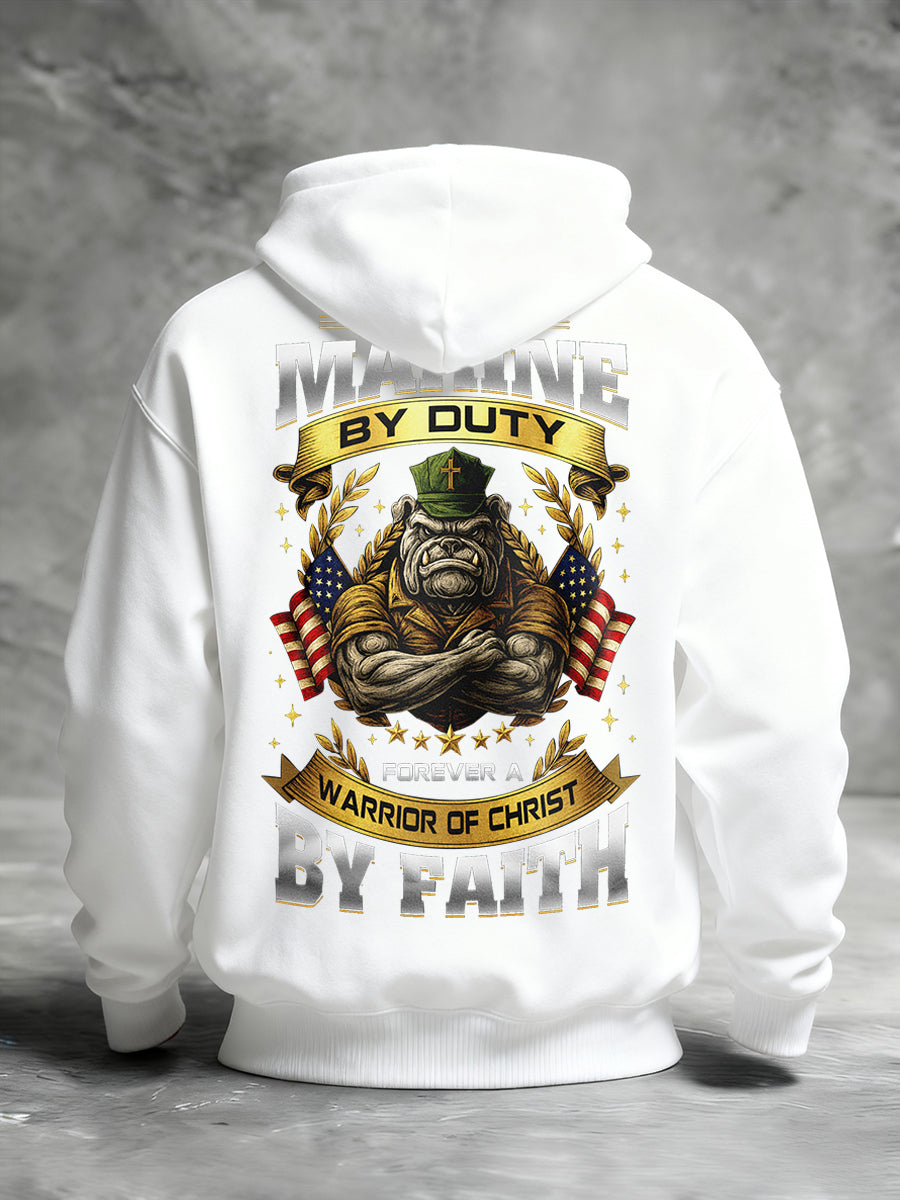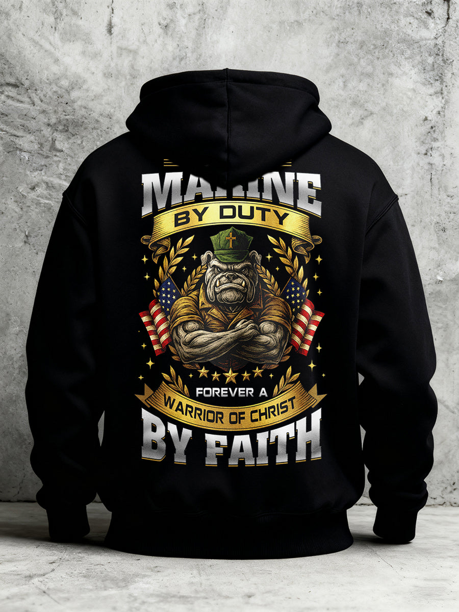 Men's Once A Marine By Duty Forever A Warrior Of Christ By Faith Printed Casual Hoodie