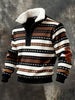 Men's Retro Color Block Print Casual Fur Collar Zip-up Hoodie