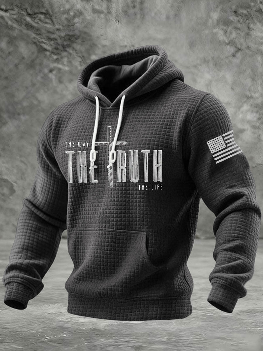 Men's The Way The Truth The Life Cross Checkered Cotton Hoodie