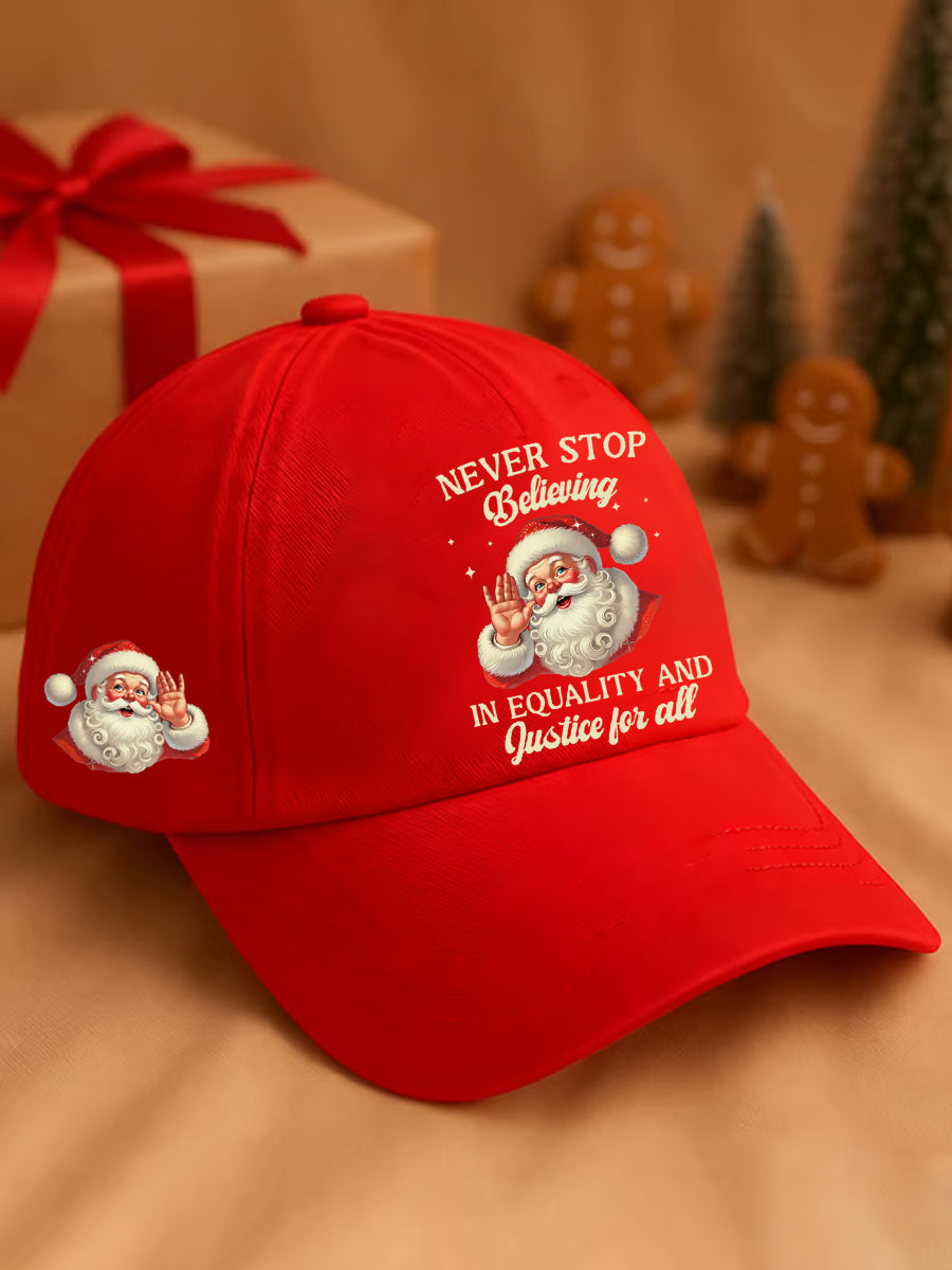 Unisex Christmas Never Stop Believing In Justice For All Santa Print Hat