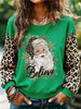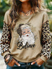 Women's Believe Santa Claus Leopard Print Christmas Casual Sweatshirt