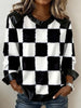 Women's Black And White Checkered Pattern Leather Patchwork Sweatshirt