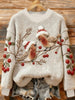 Women's Christmas Hat Cardinal Print Flannel Hoodie