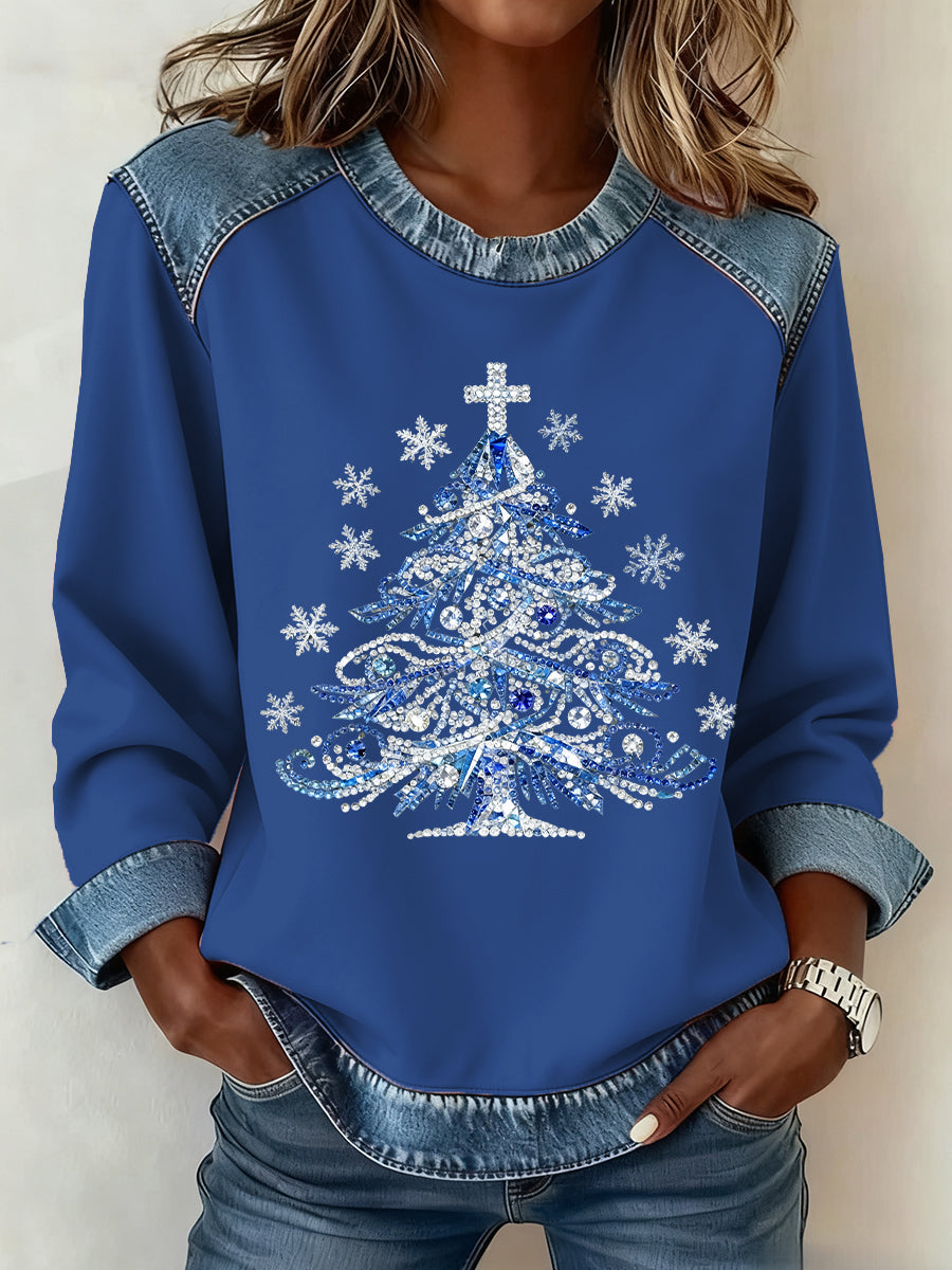Women's Christmas Pattern Patchwork Art Sweatshirt