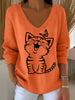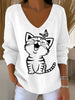 Women's Cute Cat Print Casual Long-Sleeve Top