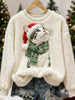 Women's Cute Christmas Cat Art Print Casual Flannel Sweatshirt