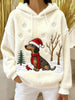 Women's Cute Christmas Dog Art Print Casual Flannel Hoodie