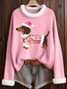 Women's Felt Art Christmas Dachshund Pattern Cozy Top
