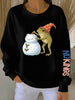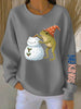 Women's Frog Snowman Christmas Art Print Ribbed Round-Neck Sweatshirt