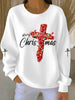 Women's Merry Christmas Cross Ribbed Round-Neck Sweatshirt