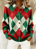 Women's Retro Christmas Plaid Art Print Casual Cardigan
