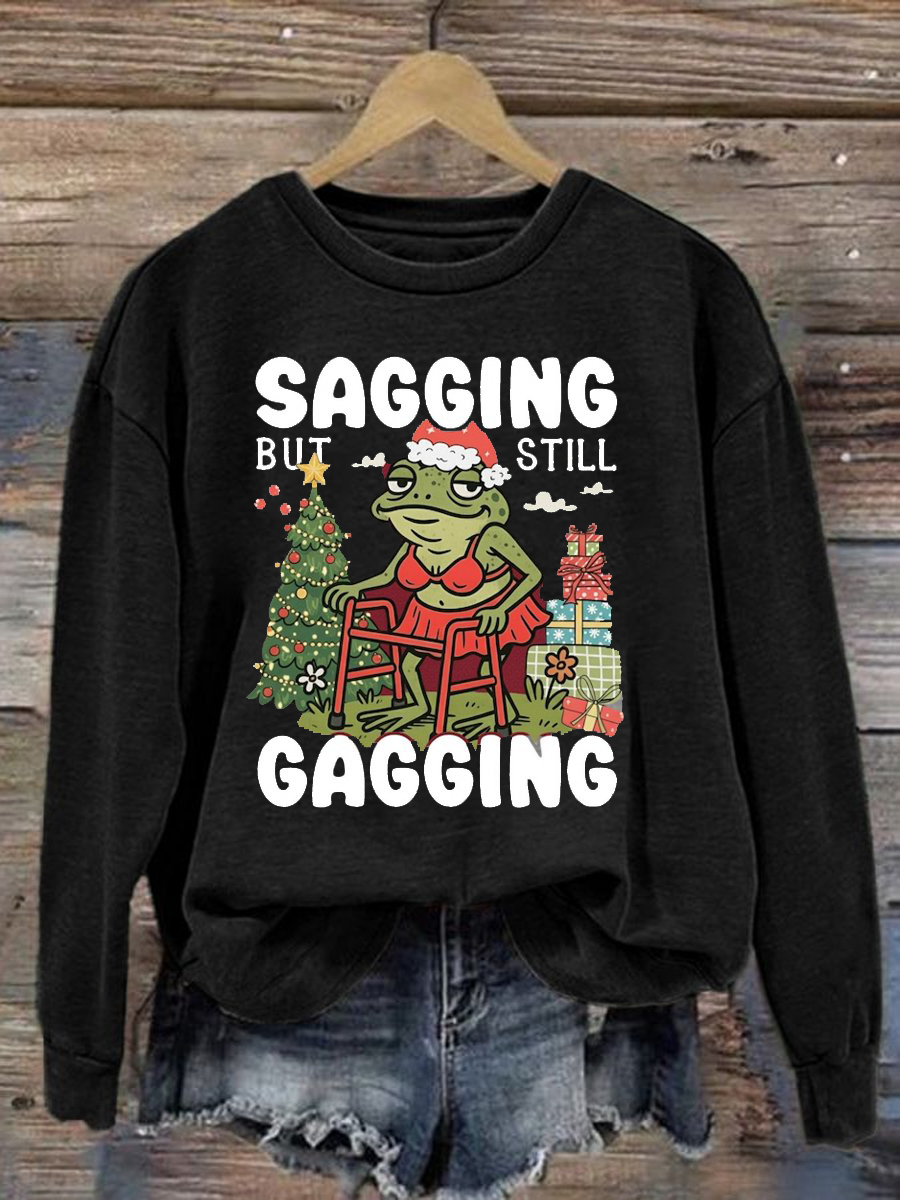 Women's Sagging But Still Gagging Funny Frog Christmas Art Print polyester sweatshirt