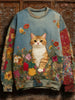 Women's Vintage Patchwork Flower Cat Art Print Sweatshirt